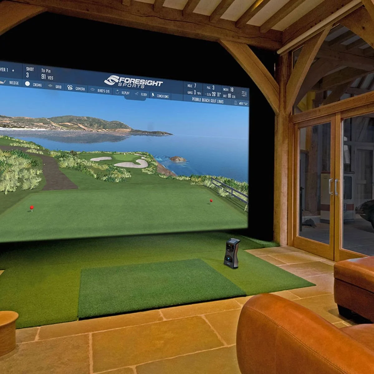 These are high-end, custom golf simulator setups installed in private homes—whether in a basement, garage, bonus room, or a dedicated golf space. Each simulator is built to fit your space precisely and includes: